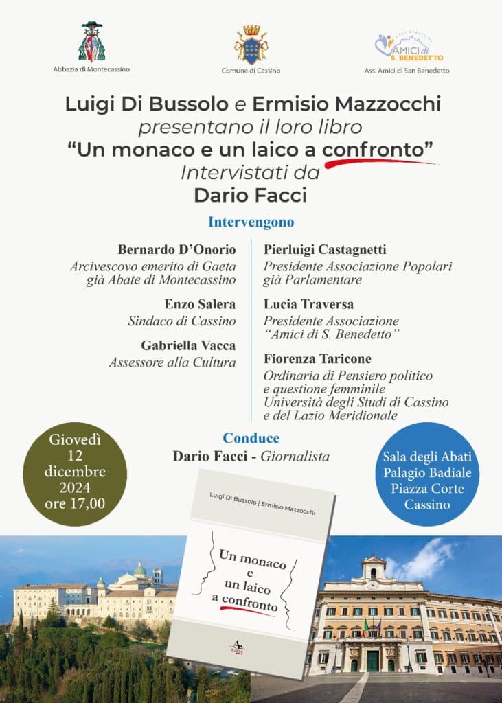 Un Monaco e un Laico a Confronto Redazione Articoli Dicembre 14th, 2024 Presentazione del libro Giovedì 12 dicembre 2024 – Sala degli AbatiPalagio Badiale – Cassino Share Facebook